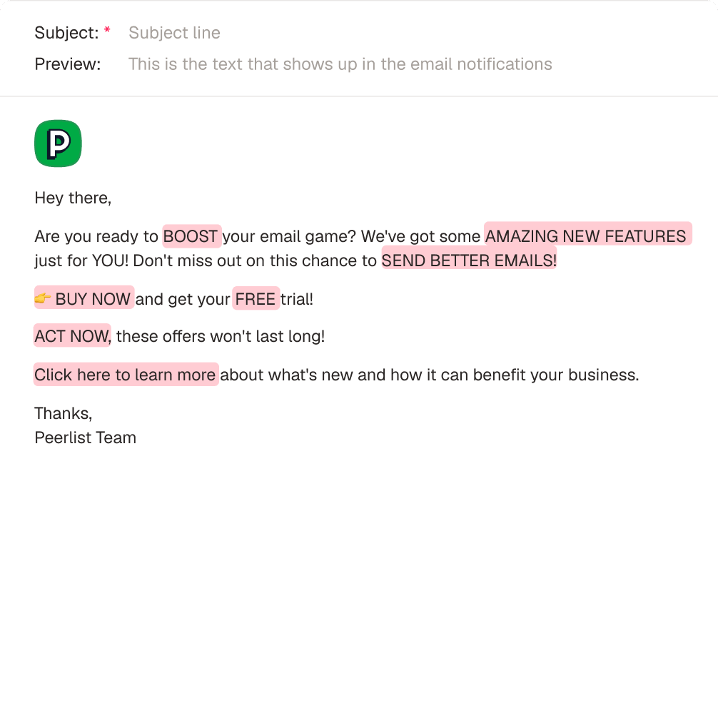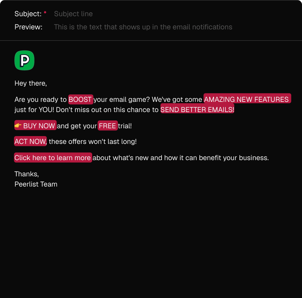 Spam Checker analyzes your email content in real-time, flags potential issues, and tells you exactly what to change before you send.