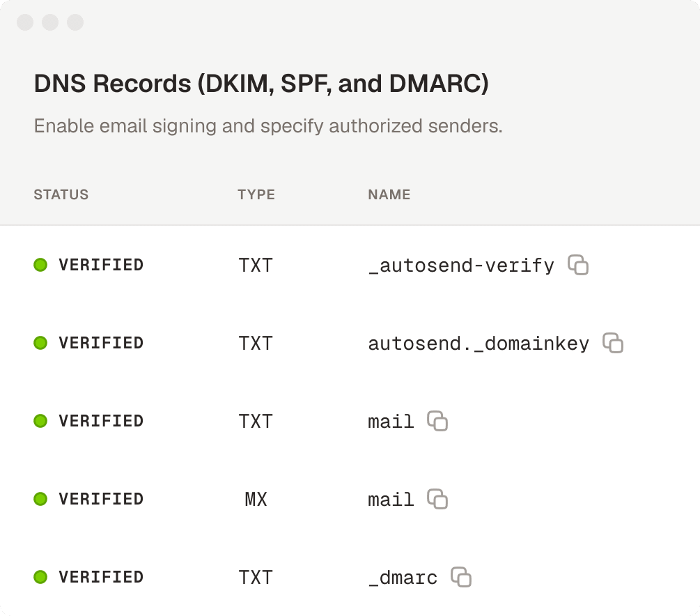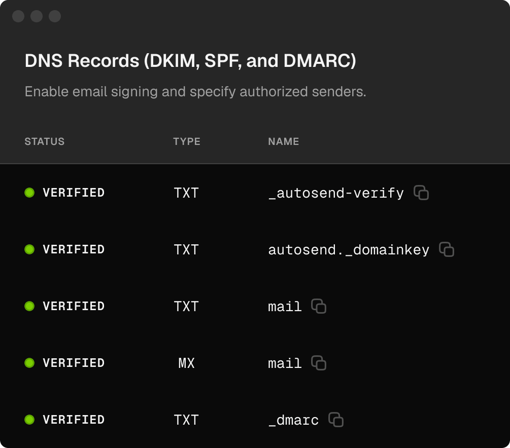 Your domain is authenticated automatically so mailbox providers know your emails are legitimate.