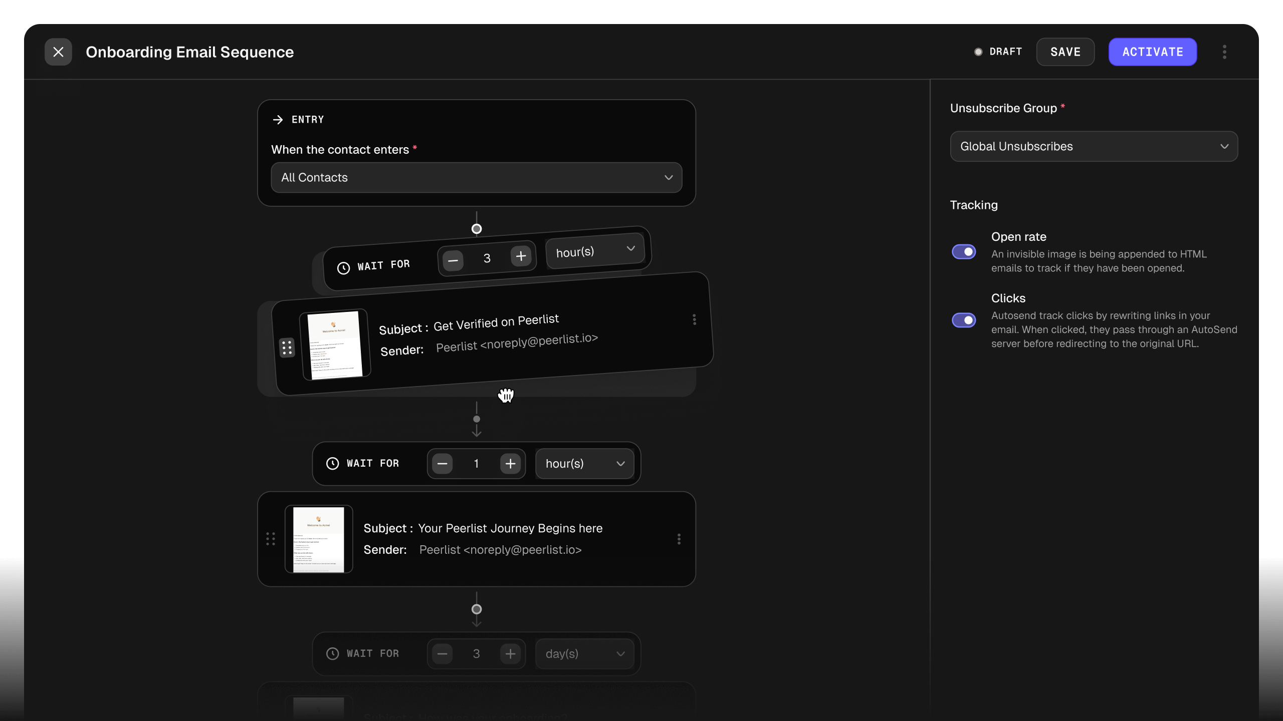 Set up a drip campaign in 10 minutes using our visual builder. No external tools, no complex integrations, no developer tickets.